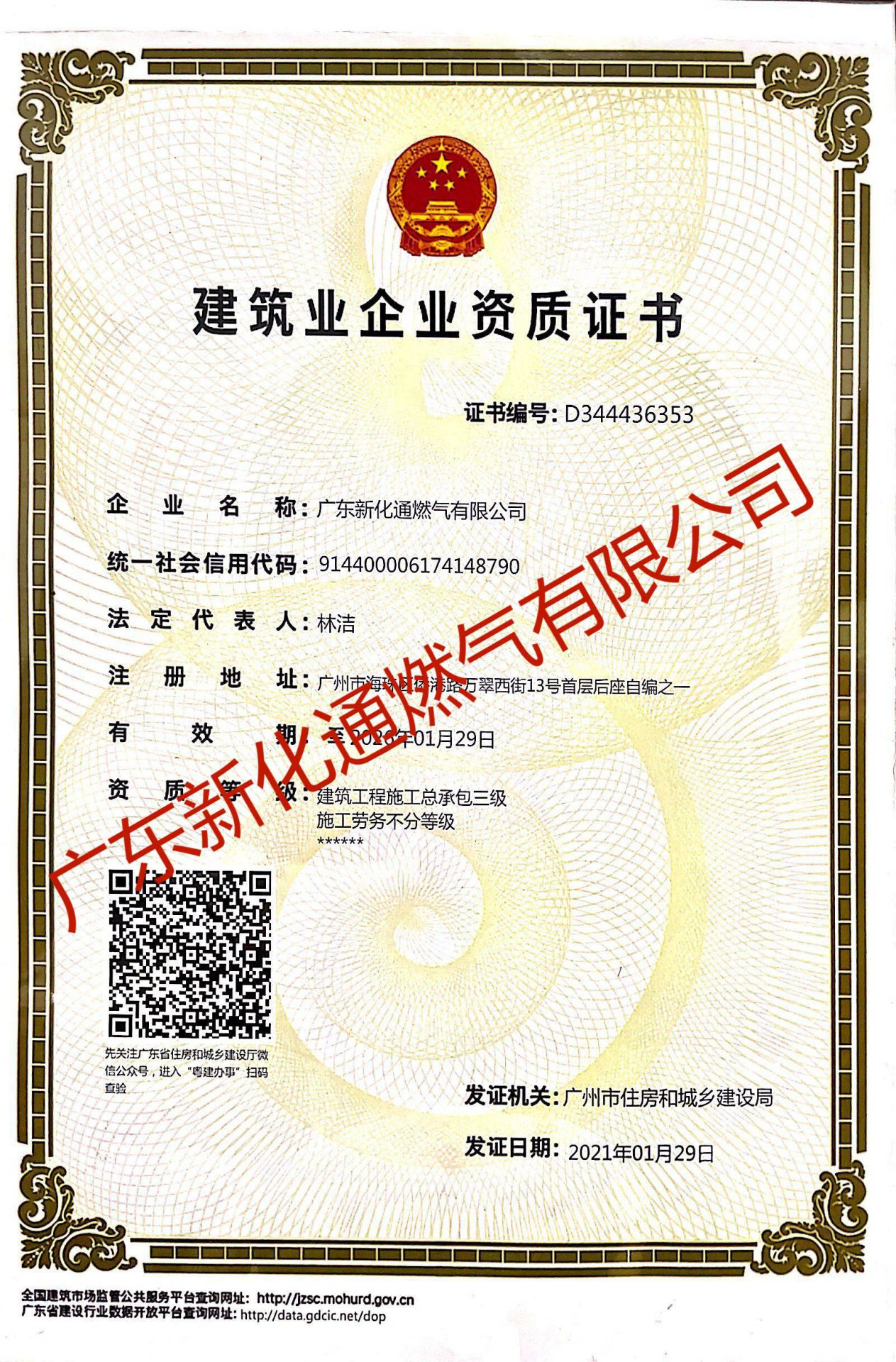 公司拥有建筑工程施工总承包三级、施工劳务不分等级、《中华人民共和国特种设备安装改造维修许可证(压力管道)》获准从事 GC2级的压力管道安装证书、ISO9001质量管理体系、HSE管理体系、安全生产许可证等资格证书。